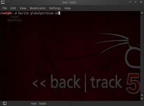To create our script, we need to open a text editor. Any of the Linux text editors will work; vi, emacs, gedit (in the GNOME), Kate, or KWrite. In this guide, we'll use the KWrite editor built into BackTrack5v3 KDE. We simply type in a terminal:
