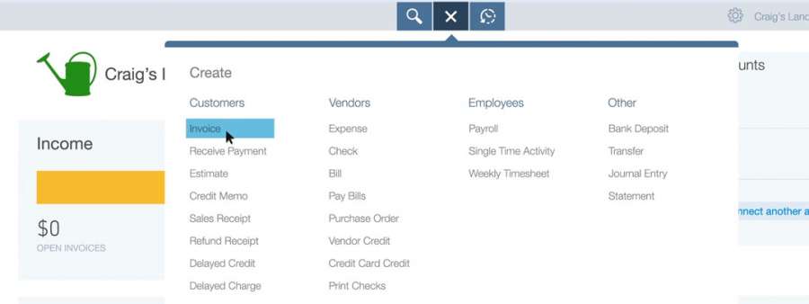 Click the Plus Sign icon and Invoices. When you’re creating your invoice, be sure to select the types of payments you’ll accept. Then send to email the invoice to your customer.