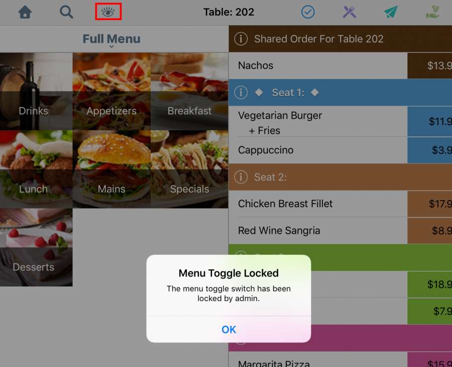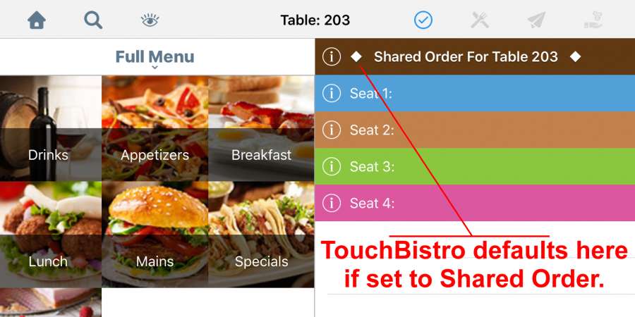 Toggle off if you wish TouchBistro to remain on the floor plan screen after choosing the table’s party size. |