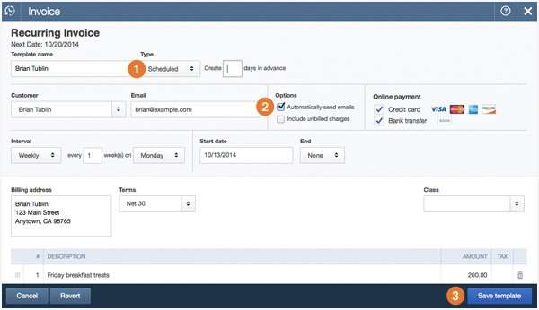 Let’s say you have two customers, and you provide breakfast pastries for their offices every Friday. It’s always the same order, on the same day. You want to automatically email your customers an invoice every Monday for $200.Create a recurring invoice