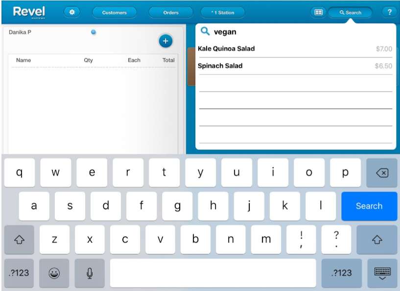 For example, a restaurant owner wants their servers to be able to locate vegan products on the POS. Rather than memorize the menu, cashiers can use the search bar on the POS to quickly find all “vegan” or “gluten free” items. A drop down list menu will appear and allow the user to choose from the list of products that are associated with the corresponding label. Once the item is chosen the cashier can immediately begin an order.