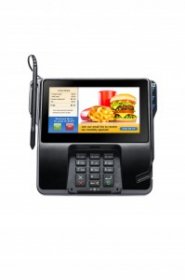 - Large, 7″ color screen area efficiently accommodates optional signature capture along with scrolling account activity, branding and promotional offers
